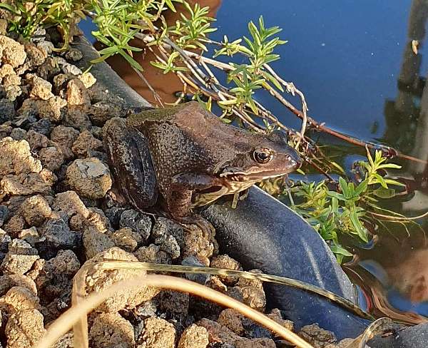 Auch ein Frosch wurde am Teich des Glücksgartens bereits gesichtet.