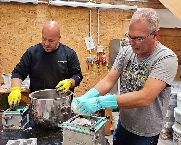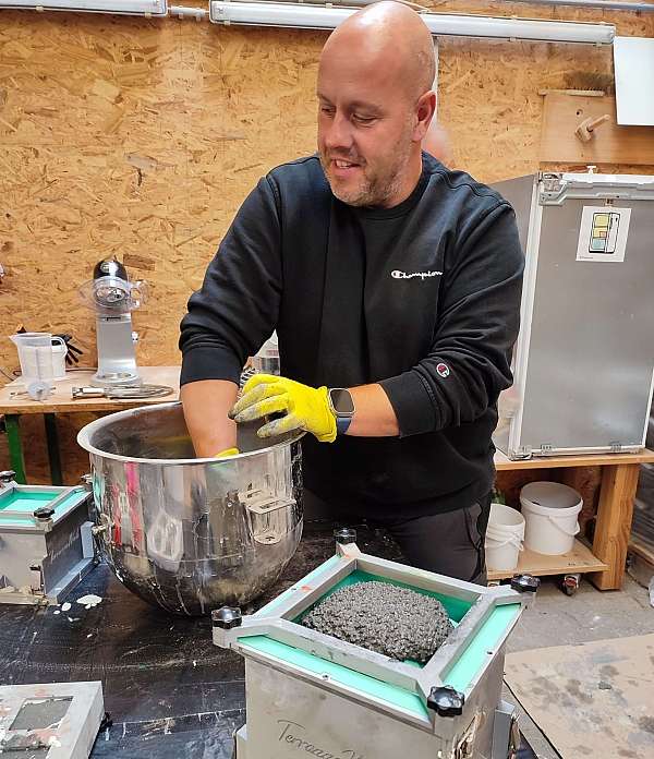 Bei der richtigen Mischung aller Zutaten für die Betonmasse ist Fingerspitzengefühl gefragt.