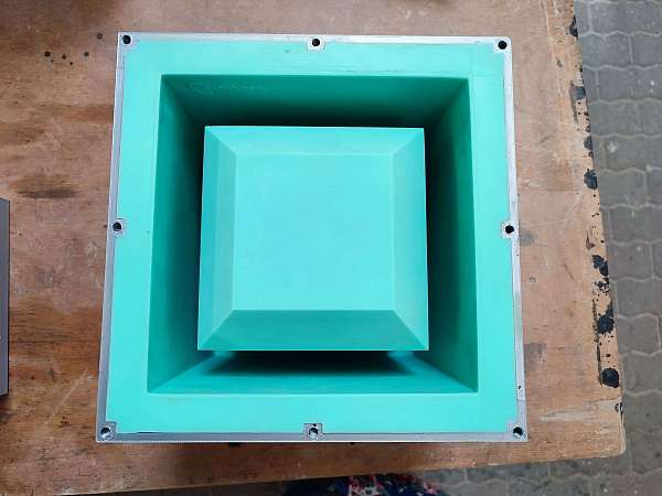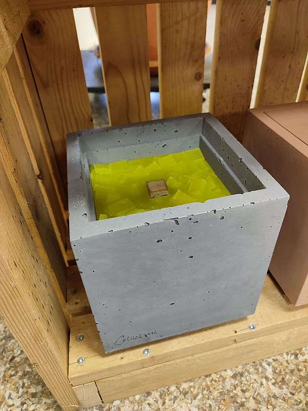 Die Cube-Form: Rund einen Tag lang trocknet der Beton darin.