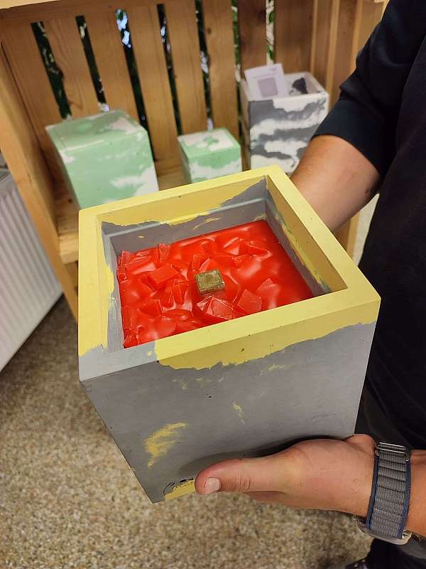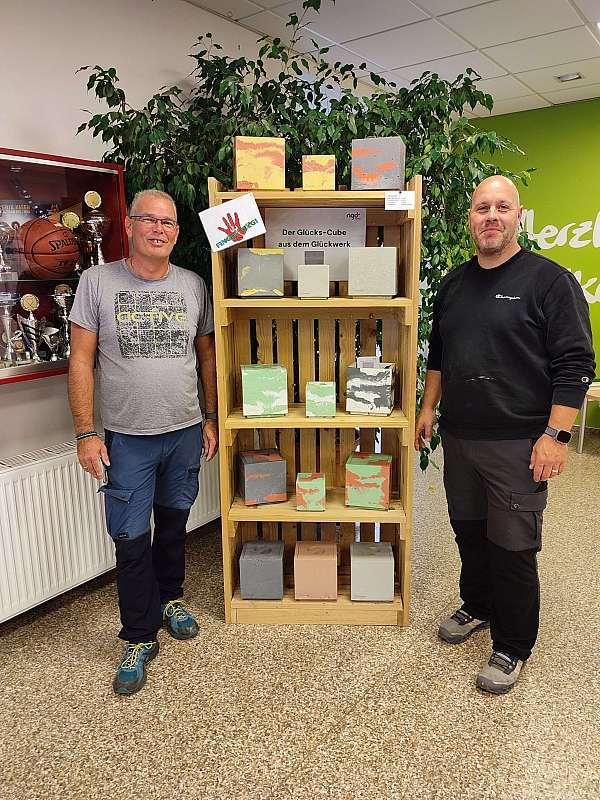 Die Beton-Cubes werden in unserer Werkstatt in der Stadtstraße in Glückstadt gegossen und im zweiten Schritt mit Wachs befüllt. Michael Scheppner und Lars Woicke tüfteln dort seit Wochen mit viel Engagement und Leidenschaft an der Gestaltung, der richtigen Zusammensetzung des Betons, der passenden Wachsbefüllung und vielem mehr. Je nach Nachfrage könnte schon bald eine Gruppe mit fünf bis sechs Beschäftigten in die Produktion einsteigen.
