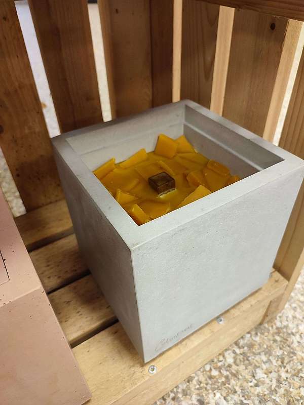 Die Cubes gibt es in unterschiedlichen Größen und Farben. Auch eine Füllung mit Bienenwachs ist möglich.