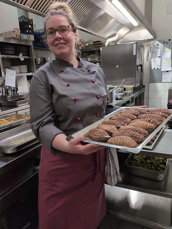 Konditorin Lisa Kühne half an diesem Abend auch in der Küche und bereitete zusammen mit ihren Kolleg*innen unter anderem leckere Entenbrüste für die Gäste zu.
